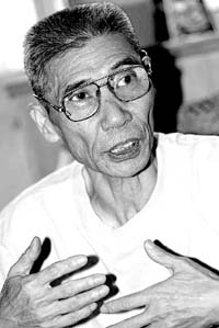 | 李澄炯老人向记者讲述发送邮件的故事。 记者 范继文 摄 |