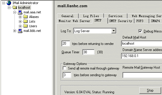 1、IMail支持通过Web页面来远程管理邮件服务器的功能。