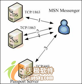 派遣服务器(Dispatch Server,简称DS服务器)。这是客户端最初连接的服务器,负责给客户端分配合适的通知服务器。域名是messenger.hotmail.com,标准服务端口是1863。完成派遣任务后,切断TCP连接。