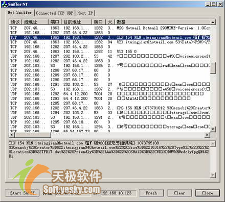 一般来说,用户微机上的程序统称为MSN Messenger“客户端”,它通过Internet连接到一个MSN Messenger“服务器”。也就是说,客户端通过服务器与其他客户端交互信息。在大多数时间里,用户的客户端与服务器会话,然后由服务器来处理这些会话信息并通知其他人。了解之前,我们使用Sniffer NT来截获登录时的数据。如图1所示。