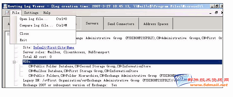 如果您的集线器传输服务器或者是边缘传输服务器安装了Exchange 2007 Service Pack 1,那么您会在工具箱中看到一个叫做路由日志查看器的工具。