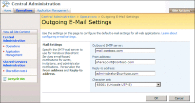 图 1 SharePoint 管理中心页面上的传出电子邮件设置(单击此图像可查看大图)