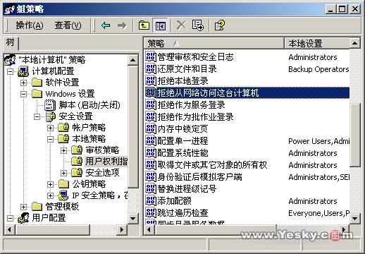 | 访问权限,是否禁止 大家知道,即使上面的所有设置都检查正常的话,如果“邻居”主机禁止其他用户通过网络来访问它时,那么我们上面的所有努力都是白费的!例如,如果本地计算机是Windows 98操作系统,而“邻居”主机使用的是Windows 2000操作系统的话,那么在默认状态下,本地主机是没有权利访问“邻居”主机中的共享文件夹的,这是因为Windows 2000操作系统在缺省状态下是禁止使用guest帐号进行登录的,如此一来本地主机由于无法登录“邻居”主机而无权访问到它的共享内容了;要避免这一现象,你可以设置一下“邻居”主机,将它的guest帐号启用起来。要开启guest帐号的话,可以依次单击“开始”/“程序”/“管理工具”/“计算机管理”命令,随后依次展开“系统工具”、“本地用户和组”、“用户”选项,在对应“用户”选项的右边子窗口中,双击其中的“guest”选项,在弹出的图3设置窗口中,取消“帐户已停用”选项,然后单击“应用”按钮就可以了。 ![]() 图3 不过如果“邻居”主机使用的是Windows XP操作系统的话,那么就不能通过启用guest帐号来解决共享访问的问题了,因为在默认状态下,Windows XP操作系统是不允许guest帐号通过网络来访问“邻居”主机的。此时,你可以先开通guest帐号,然后依次单击“开始”/“运行”命令,在弹出的运行对话框中输入“gpedit.msc”命令,在随后出现的组策略编辑界面中,依次展开“本地计算机策略”、“计算机配置”、“Windows设置”、“安全设置”、“本地策略”、“用户权利指派”选项,在对应“用户权利指派”选项右边的子窗口中(如图4所示),双击“拒绝从网络访问这台计算机”选项,在其后打开的设置界面中,你只要选中guest帐号,然后将它直接删除掉,最后单击“确定”按钮,那么其他计算机就能在网上邻居窗口中看到“邻居”主机中的共享文件夹了。 ![]() 图4 |