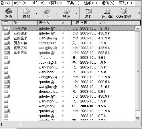 当需要将邮件按照是否阅读、回复加以分类时,可以使用Foxmail的“标记”功能。在Foxmail主窗口的邮件列表中选择需要使用“标记”的邮件,右击鼠标,从快捷菜单中选择“标记状态为”命令,然后从弹出为的菜单中选择一种标记状态即可,这些标视状态分别是:已读、未读、已回复、未回复。需要按标记状态排序时,可以单击邮件列表框顶部的标题栏,按照前面的方法操作即可。如果不需要将邮件进行排序,则可以执行“查看→排序”命令,然后选择“无”命令,这样将就会按照邮件接收到的先后次序排列了。