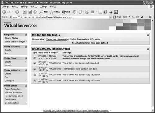 1.和Microsoft Virtual PC 2004不一样,由于采用B/S模式,Virtual Server所创建的虚拟机无需图形界面,所以虚拟机的性能远胜过Microsoft Virtual PC 2004。笔者做过一个测试,在同样一台服务器上,虚拟机里的操作系统都是Windows Server 2003,用Microsoft Virtual PC 2004创建的虚拟机分配160MB内存,其性能和Virtual Server创建的虚拟机分配100MB内存的性能大致相当!