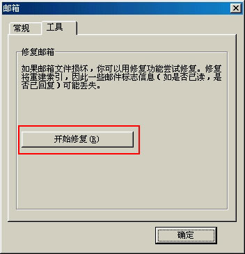 要想恢复被删除的邮件,只需右击“废件箱”,然后从弹出的快捷菜单中执行“属性”命令,打开“邮箱属性”对话框,然后单击“工具”标签,在这里我们会发现一个“开始修复”按钮(图3),单击该按钮,删除的邮件就可以得到恢复。再到“废件箱”看看,那些被删除的邮件是不是又都回来了!