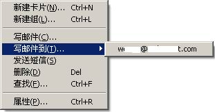 第二种方法不需要更改姓名。发邮件时,右键单击卡片,在快捷菜单中选择“发邮件到”,单击E-mail,如图所示(图7),打开邮件编辑器,此时“收信人”一栏内出现的是E-mail地址,而非姓名。