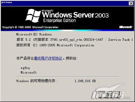 2、检查操作系统版本和活动目录版本 Exchange 2003要求安装在Windows 2000 serverSP3或更高版本及Windows 2003 server上,在Windows的【开始】的【运行】里键入查看版本的命令:winver,弹出如下窗口。