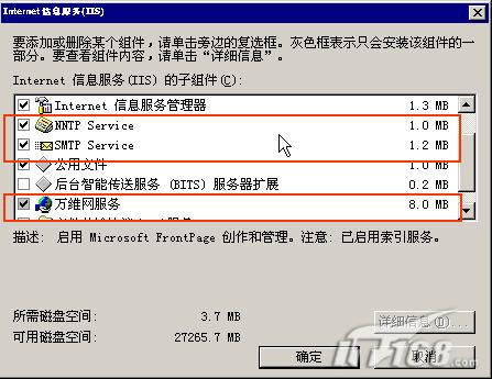 3、安装必需服务 安装Exchange服务器,需要你的服务器上安装IIS、NNTP、SMTP、及万维网服务和ASP.NET.在控制面板的【添加删除程序】里选择【添加删除Windows组件】。如下图: