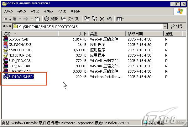 4、安装Windows支持工具 然后安装Windows支持工具,这些工具在后续步骤中会用到,在Windows2003操作系统光盘下的SUPPORT TOOL文件下TOOL的文件夹下点击SUPTOOLS.EXE。