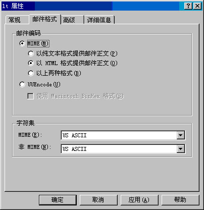 针对在 Intetnet 邮件格式中定义的每个域,可以设置如下属性: