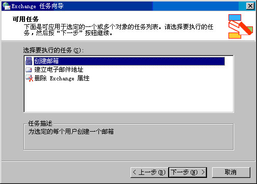 2. 在"Exchange 任务向导"中的"可用任务"页(见图 4.5),选择"创建邮箱"或"建立电子邮件地址"。