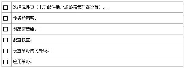 单击"收件人策略"后,需要完成下列检查表中列出的步骤。这些步骤的具体操作信息将在随后各节说明。