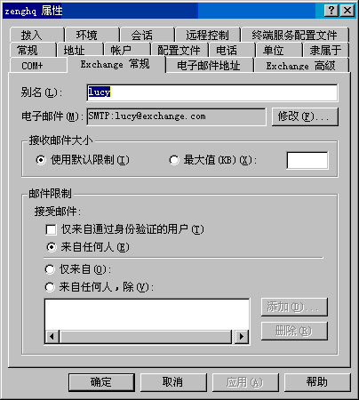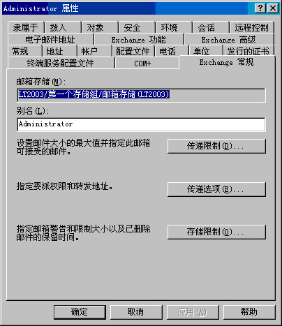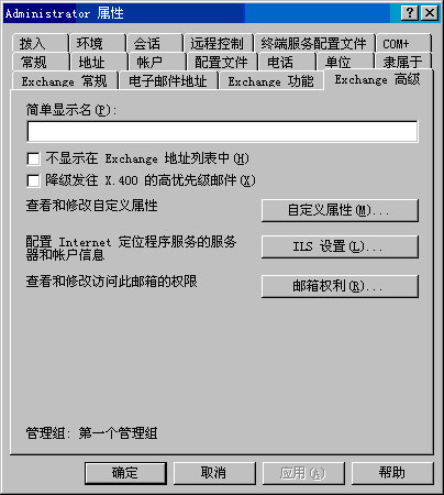注意 要查看 Exchange 特有的选项,在其中的 Active Directory 用户和计算机上创建用户的计算机上必须安装有 Exchange 系统工具。在未安装 Exchange 系统工具的计算机上创建用户时,默认情况下将不会为用户创建邮箱。