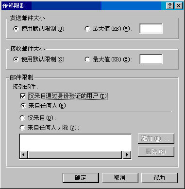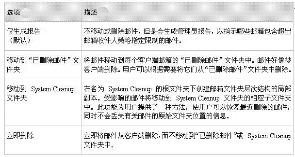 没有对邮件强制执行期限和大小限制的默认策略。当创建第一个这样的策略时,将对邮箱中的每个文件夹应用默认的 30 天和 1,024 KB 限制。邮箱管理器只处理同时超出这两个限制的邮件。在默认设置下,500 KB 的邮件永远都不会被处理,无论它已存在多长时间。