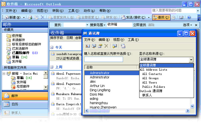 任何邮件系统的中心都是接收邮件的人和资源。单个人可能收到来自同事的邮件,公用文件夹可能收到来自特定讨论中的某个参与者的邮件。