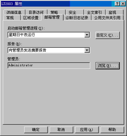 在邮箱管理器运行之前,必须在 Exchange 系统管理器中的服务器对象上启动邮箱管理进程。要启动邮箱管理进程,应使用服务器对象"属性"对话框中的"邮箱管理"选项卡(见图 4.2)。有关详细信息,请参阅第 3 章"配置 Exchange 服务器设置"中的"安排邮箱管理器进程"。