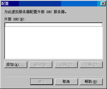 3. 在"配置"对话框中(见图 5.8),单击"添加"以输入外部 DNS 服务器的 IP 地址。如果使用了多个外部 DNS 服务器,请使用"上移"或"下移"按钮设置 DNS 服务器的首选顺序。
