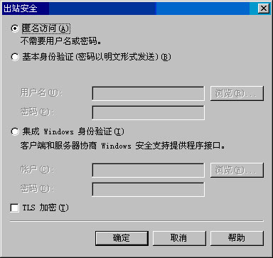 2. 在"出站安全"对话框中(见图 5.13),选择"匿名访问"。