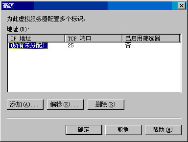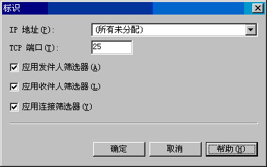 SMTP 虚拟服务器由 IP 地址和端口号的唯一组合定义。IP 地址是 SMTP 虚拟服务器用来侦听传入 SMTP 连接的地址。默认的 IP 地址是"所有未分配",这意味着 SMTP 虚拟服务器在任意可用的 IP 地址上执行侦听。端口号是 SMTP 虚拟服务器用来接收通信的端口。到 SMTP 虚拟服务器的入站连接的默认端口号是端口 25。