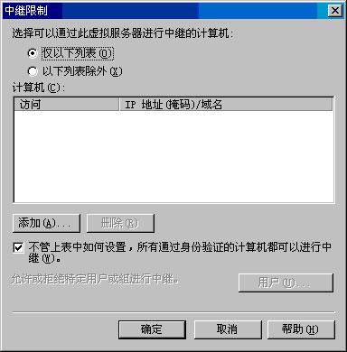 · 要配置服务器以接收 Internet 邮件,向导将引导您完成为 Internet SMTP 虚拟服务器分配 Internet IP 地址的过程。之所以要为该虚拟服务器分配 Internet IP 地址,是因为外部服务器必须能够连接到该 SMTP 虚拟服务器才能发送 Internet 邮件。此外,您的 DNS 服务器上必须具有引用此服务器的 MX 记录以及 Internet SMTP 虚拟服务器的 IP 地址。