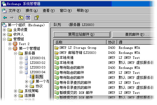 在 Exchange 2003 和 Exchange 2000 中,管理和路由功能被分割成不同的单位: