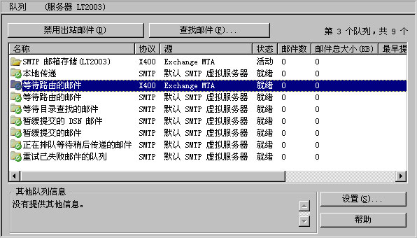 可以使用队列查看器来验证 Exchange MTA 队列中是否有邮件。图 5.4 显示了没有邮件的 Exchange MTA 队列。