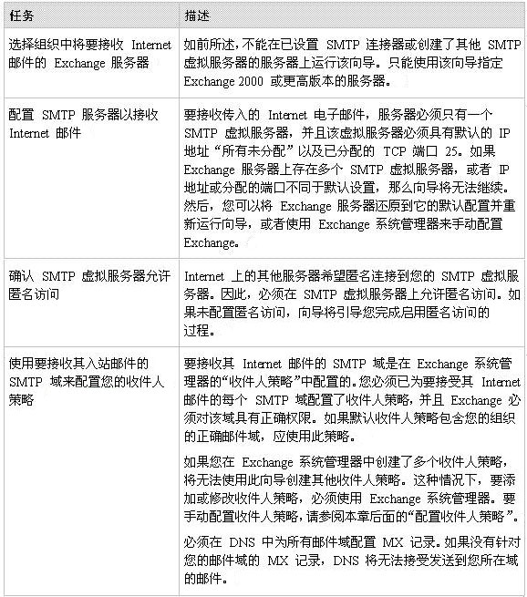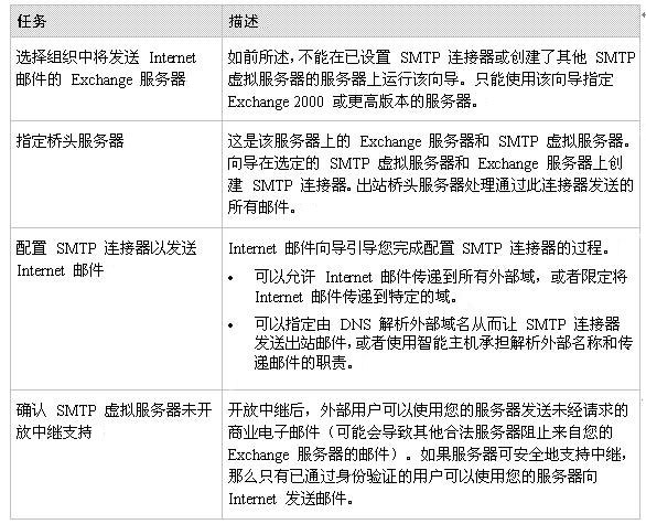 配置 Exchange 以发送 Internet 邮件的过程包括下列任务: