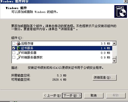 控制面板=>添加/删除程序=>添加/删除Windows组件 =>证书服务