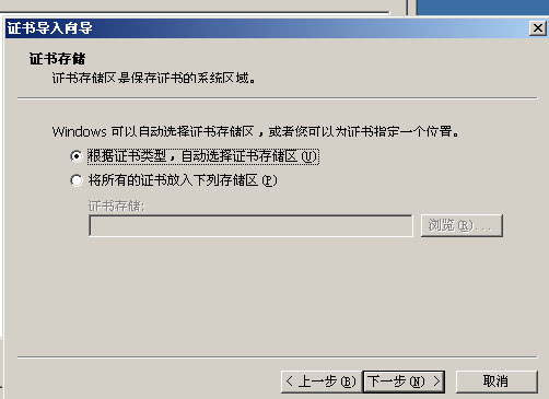 选择“根据证书类型,自动选择证书存储区”,继续下一步。完成后,对于安全警告,选择接受: