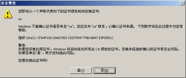 这时IE会弹出提示对话框,要用户对证书进行确认。在上面点击“查看证书”,然后点击“安装证书”,按照向导提示,接受默认设置导入证书。