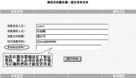 果冻提示 为了避免乱发传真导致资源浪费,可以在传真服务器的主面板上设定登录密码。这样,如果在图4所示的页面中没有填入正确的系统验证密码,服务器将会拒绝发送传真。