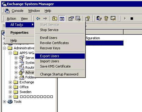 警告:在导出用户证书之前,必须对KMS数据库进行完全备份并确保备份有效,导出操作是破坏性的,导出的密钥将被从KMS数据库里删除!!重要:如果在导出过程中,KMS或CA在线,那么导出过程将试图吊销所有的V3证书,这样你必须立即在WIN2003