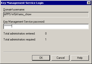 3、输入KMS的管理密码,默认为password