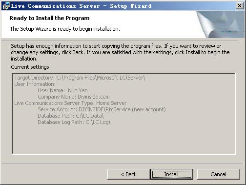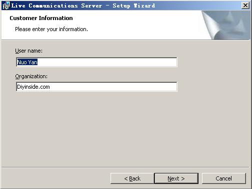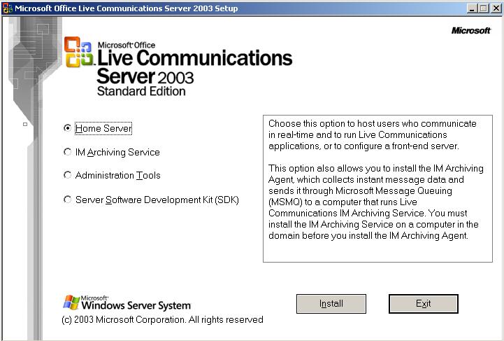 当服务器具备了这些要求后,我们就可以进行安装Live Communication Server 2003了。