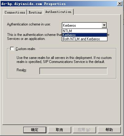 Live Communication Server支持两种验证方式,Kerberos和NTLM。我们可以选择其中的任意一种,也可以同时选择两种验证方式,如图13。