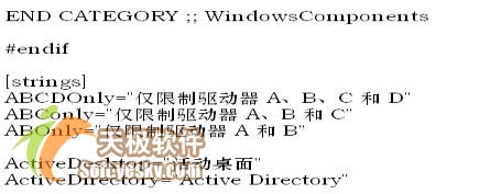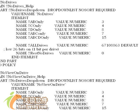 将上面的语句在“!!NoDrives_Help”和“!!NoViewOnDrive”两个地方上填写。并且在图4所示的位置,也要加入一行: