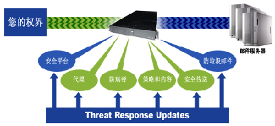 威胁防御——通过拒绝声誉不好的发件人的连接,IronMail 可防止发送到您的 IronMail 的较大百分比的垃圾邮件、网页仿冒和其他不希望的攻击。通过使用专属工具,如 IronMail Connection Control、Trusted Source、Zero Day Virus Protection 和其他工具,IronMail 可以在垃圾邮件、病毒、邮件诈骗和拒绝服务攻击影响您的电子邮件系统性能之前将其阻拦。其他解决方案只能阻拦“已知的”威胁,而 IronMail 具有早于传统的检测技术识别电子邮件安全威胁的能力。