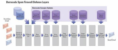 相对来说,目前专业的企业级垃圾邮件防火墙不是很多,大部门还是兼顾防病毒、防攻击、防垃圾等“多防”硬件。但是CipherTrust公司的Ironmail和Barracuda Networks的梭子鱼就是专门的垃圾邮件防火墙。