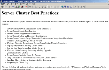 ClusDiag是第一款能够检查你的Windows Server 2003群集状态的工具软件。如果你知道你的Windows群集是健康的,那么你的Microsoft Exchange群集的安装是具有坚实的基础的。在这篇文章中,我向你展示了一些Clusdiag的功能,我建议你在Clusdiag的帮助文件中学习更多的相关信息。