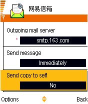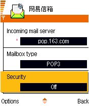 首先进入“Messaging”按“Options”选择“Settings”,再选择E-mail,然后对照上图设置。