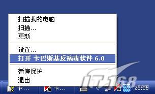 选择"打开 卡巴斯基防病毒软件 6.0"进入软件主界面,如图2。