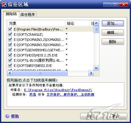 我们可以自行设置不必由软件监控的项目,点击图3中的"信任区域"按钮进入,如图5。