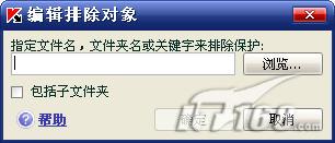 你可以指定文件名,文件夹名或关键字来设置排除保护,当然最简单的还是点击"浏览"按钮,然后浏览选择排除的文件夹、文件即可。不过你还可试试使用关键字的方法: