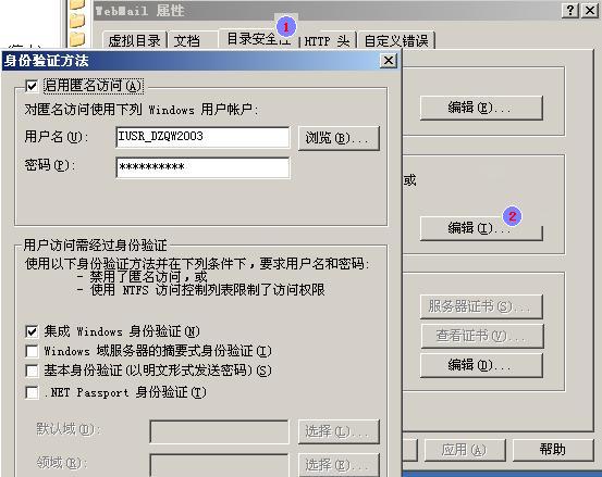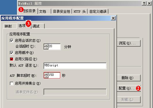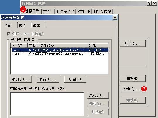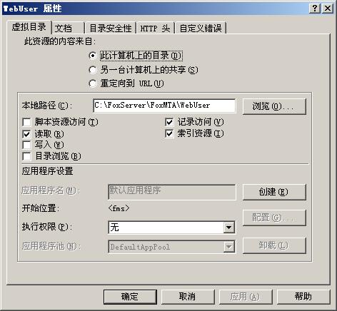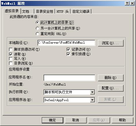建立wapmail、webmail、webuser、cgi虚拟目录,建立虚拟目录是注意执行权限。