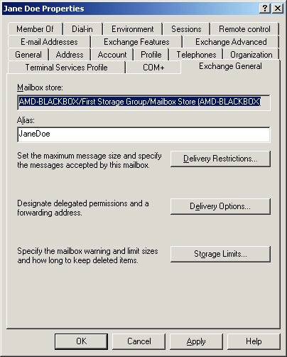 图A:使用SBS的服务器管理控制台改变用户的邮箱设置