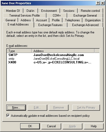 图H:当创建一个新SMTP地址时,你必须输入你希望为用户添加的完整的电子邮件地址。