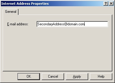 9.指定所需要的信息来创建一个新的邮件地址(为了创建一个SMTP地址,必须在网络地址属性对话框中输入新电子邮件地址,然后点击OK,图H)。