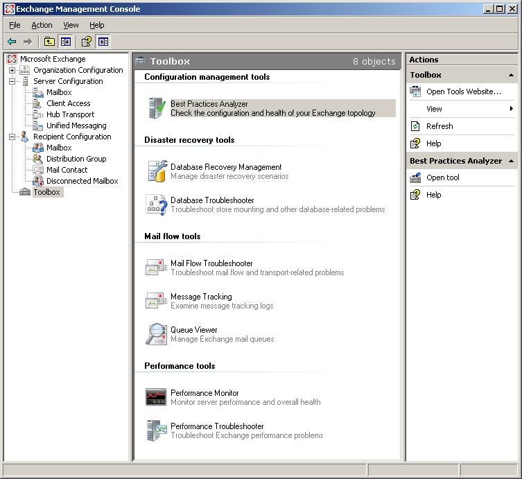 4. 工具箱 为Exchange管理工具和故障排除人员提供了一个中心管理的场所。