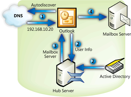 1. Outlook通过DNS定位到某台客户端访问服务器的自动发现服务。